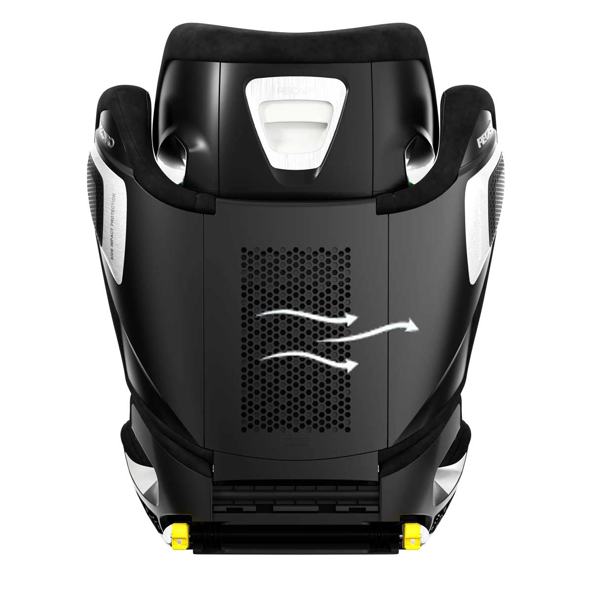 Heksagonalni otvori na stražnjem dijelu autosjedalice osiguravaju optimalnu cirkulaciju zraka, poboljšavajući protok i brže raspršivanje topline, tako da vašoj djeci bude svaka vožnja ugodna. Ova značajka će posebice doći do izražaja za vrijeme toplih dana!